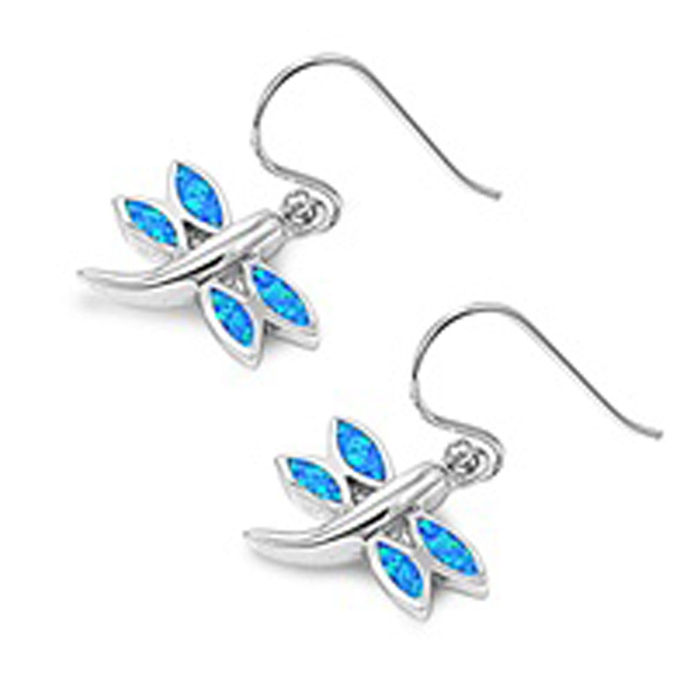 Dragonfly Earrings Blue Simulated Opal .925 Sterling Silver