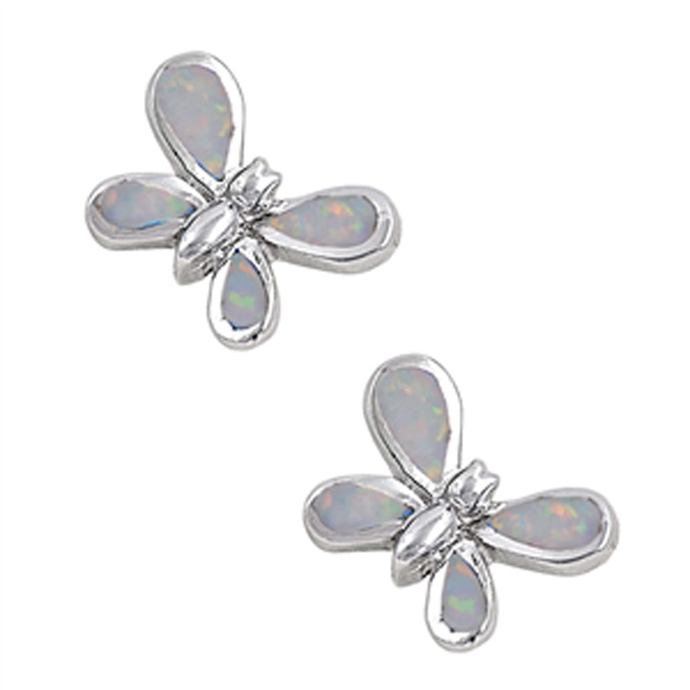 Teardrop Wing High Polish Butterfly Insect White Simulated Opal .925 Sterling Silver Earrings