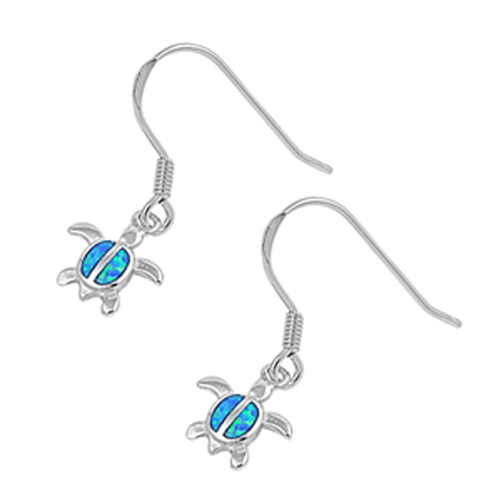 Turtle Hanging Earrings Blue Simulated Opal .925 Sterling Silver