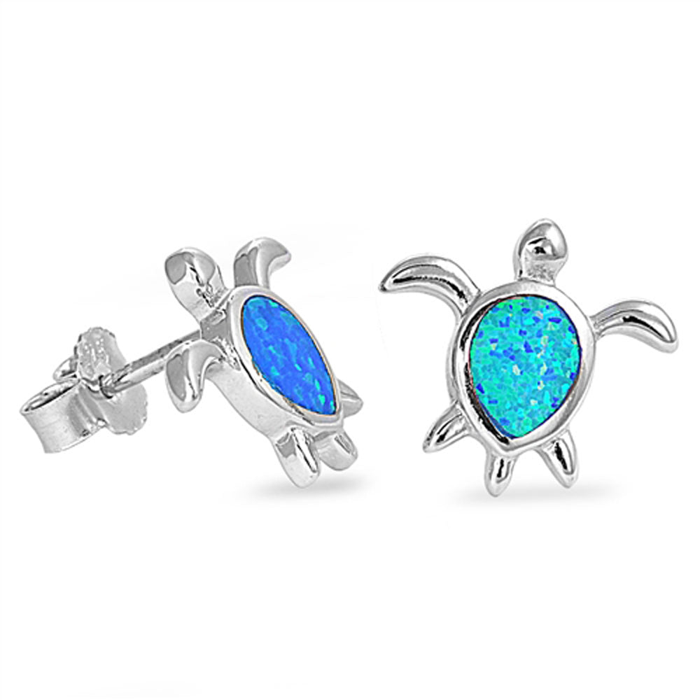 Sterling Silver High Polish Turtle Ocean Modern Earrings Blue Synthetic Opal 925