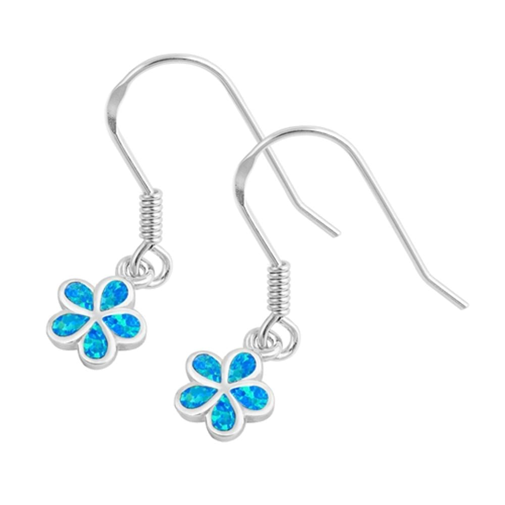 Plumeria Hanging Earrings Blue Simulated Opal .925 Sterling Silver
