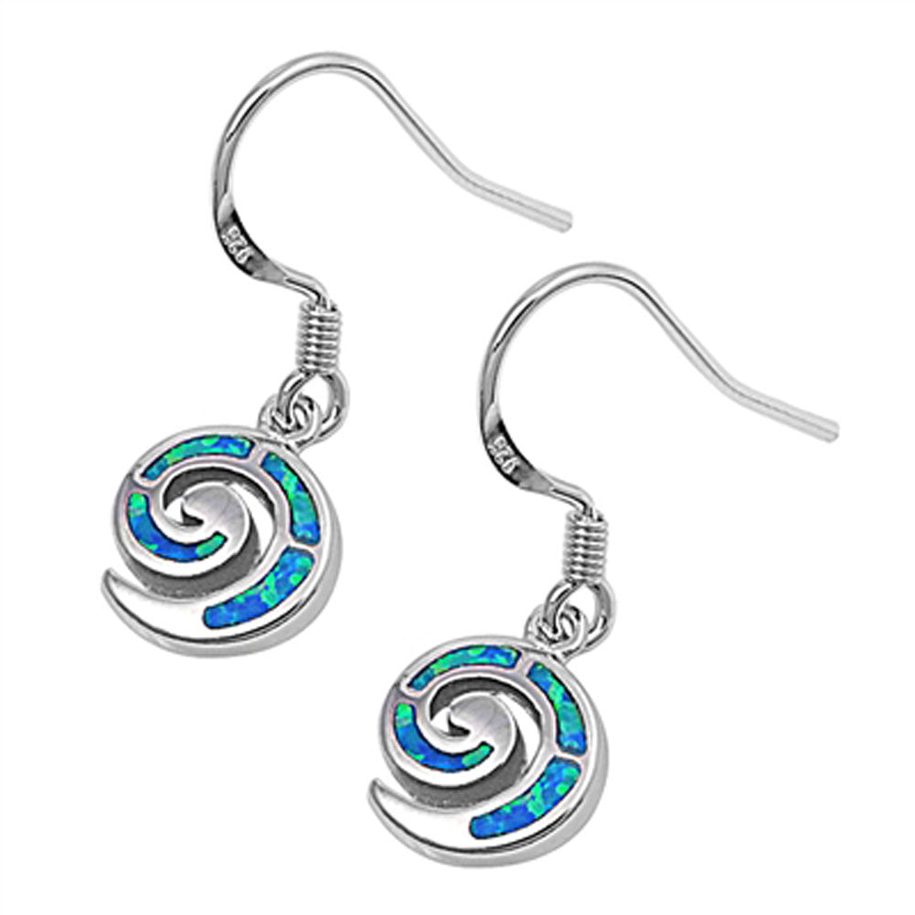 Swirl Hanging Earrings Blue Simulated Opal .925 Sterling Silver