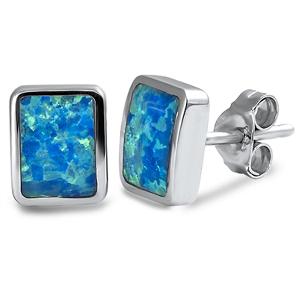 Rectangle Earrings Blue Simulated Opal .925 Sterling Silver