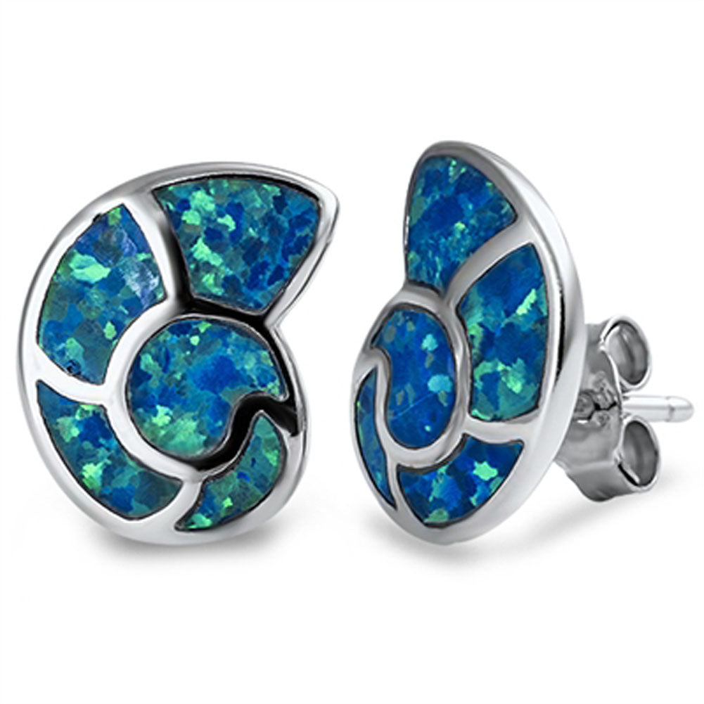 Shell Earrings Blue Simulated Opal .925 Sterling Silver