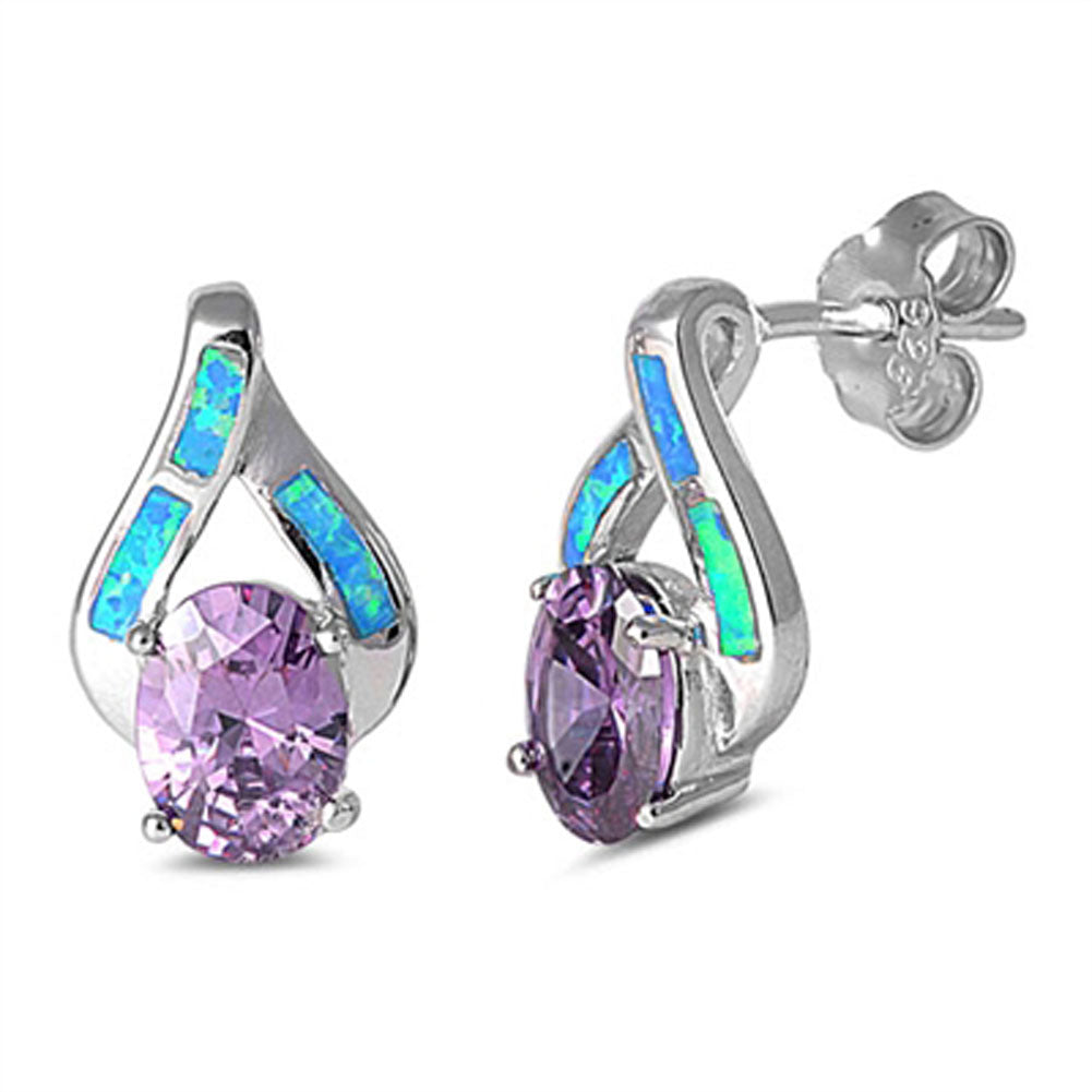 Oval Earrings Simulated Amethyst Blue Simulated Opal .925 Sterling Silver