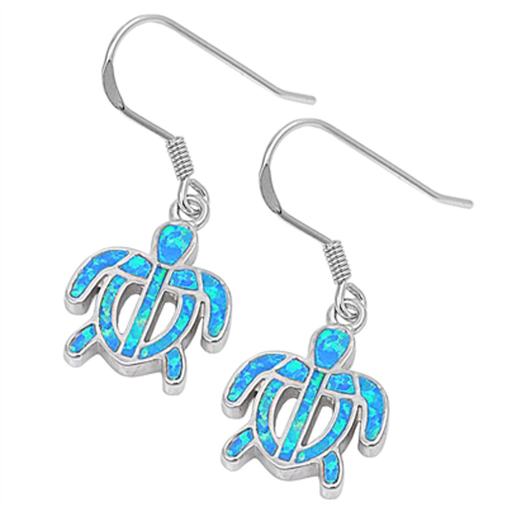 Turtle Hanging Earrings Blue Simulated Opal .925 Sterling Silver