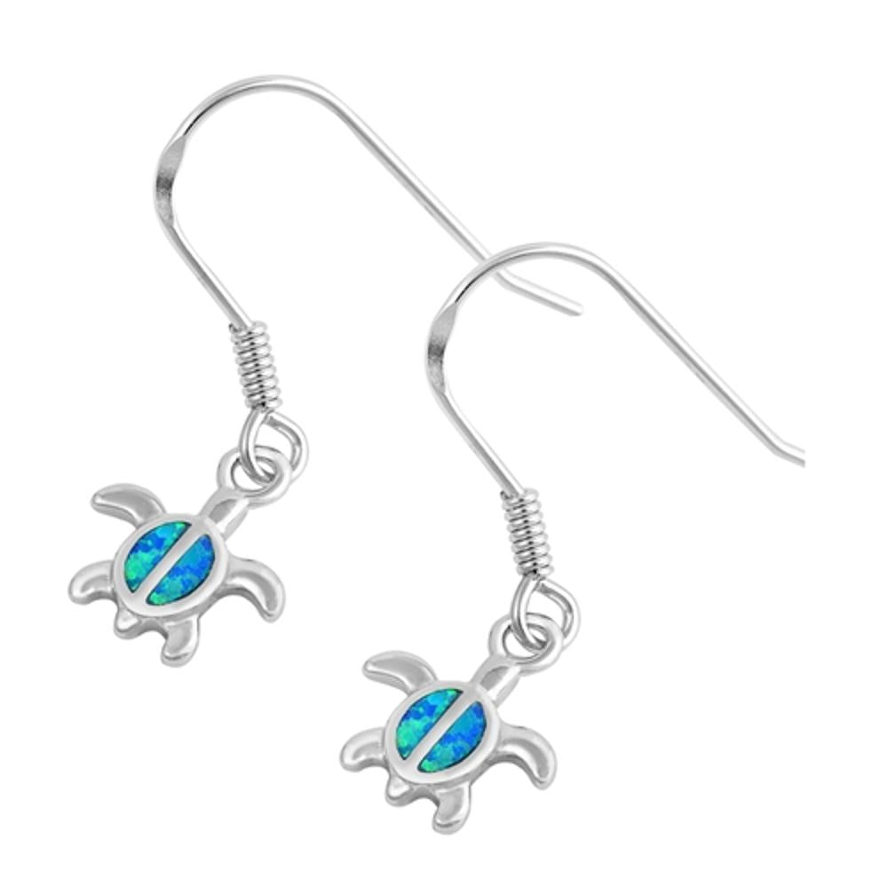 Turtle Hanging Earrings Blue Simulated Opal .925 Sterling Silver