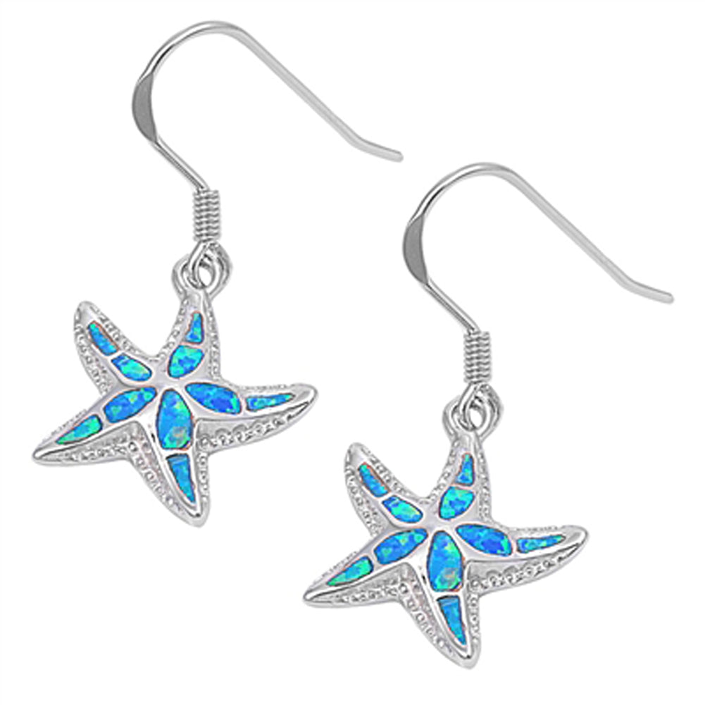 Animal Studded Starfish Whimsical Blue Simulated Opal .925 Sterling Silver Earrings