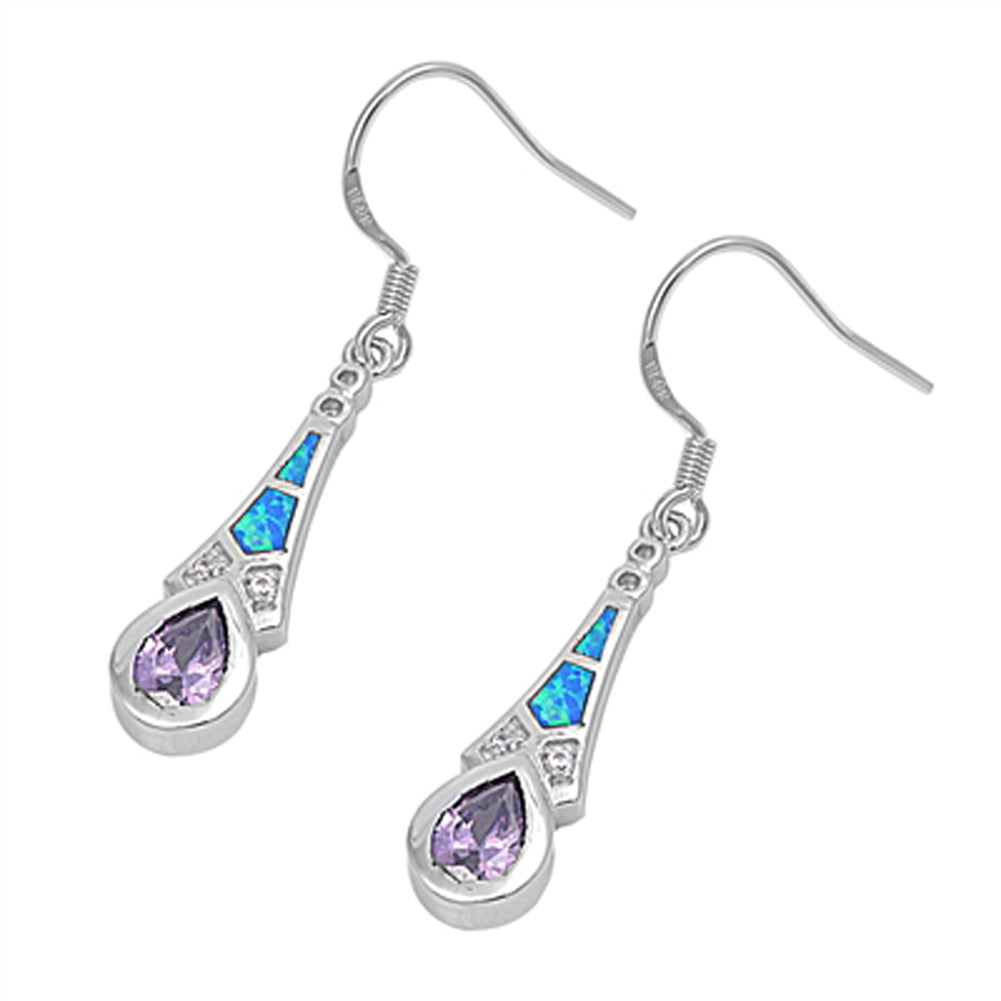 Art Deco Ornate Studded Teardrop Fancy Blue Simulated Opal .925 Sterling Silver Earrings