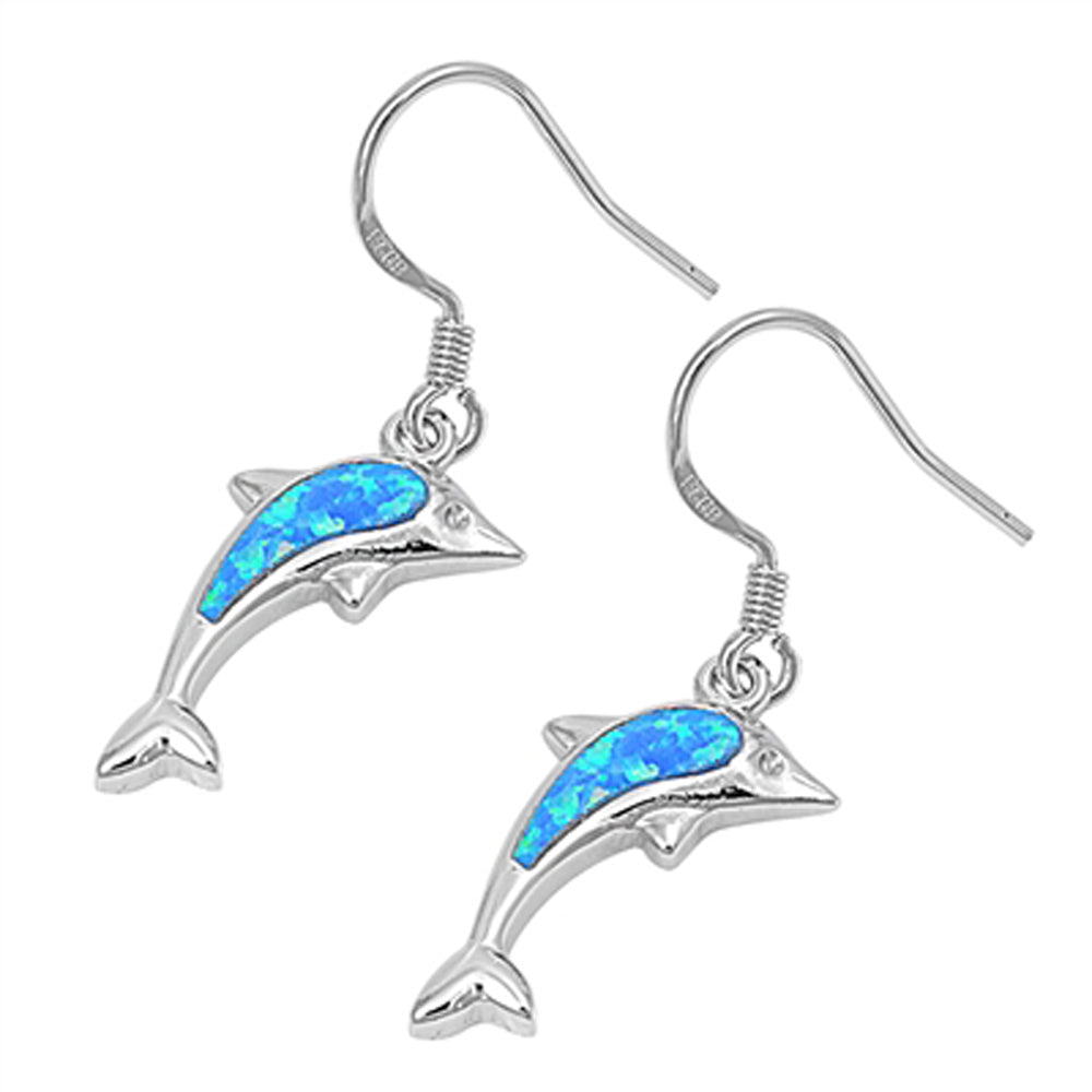 Sterling Silver Dolphin High Polish Animal Ocean Earrings Blue Synthetic Opal