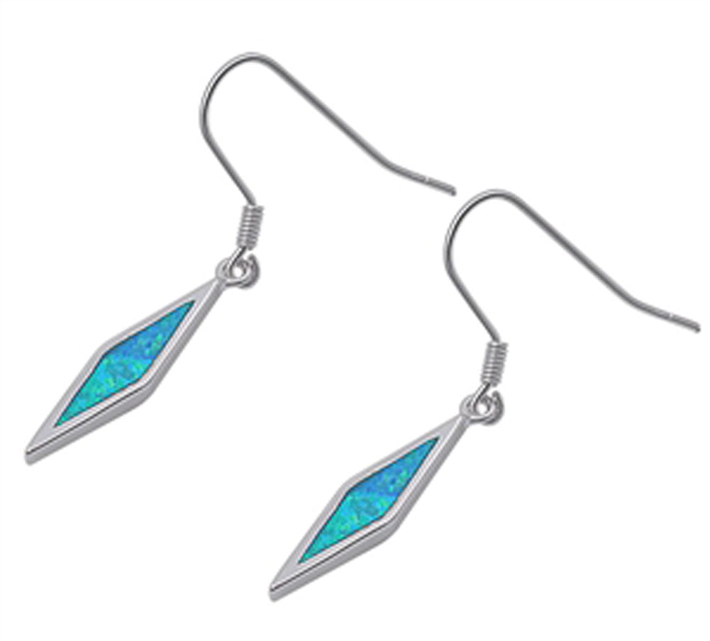 Long Earrings Blue Simulated Opal .925 Sterling Silver
