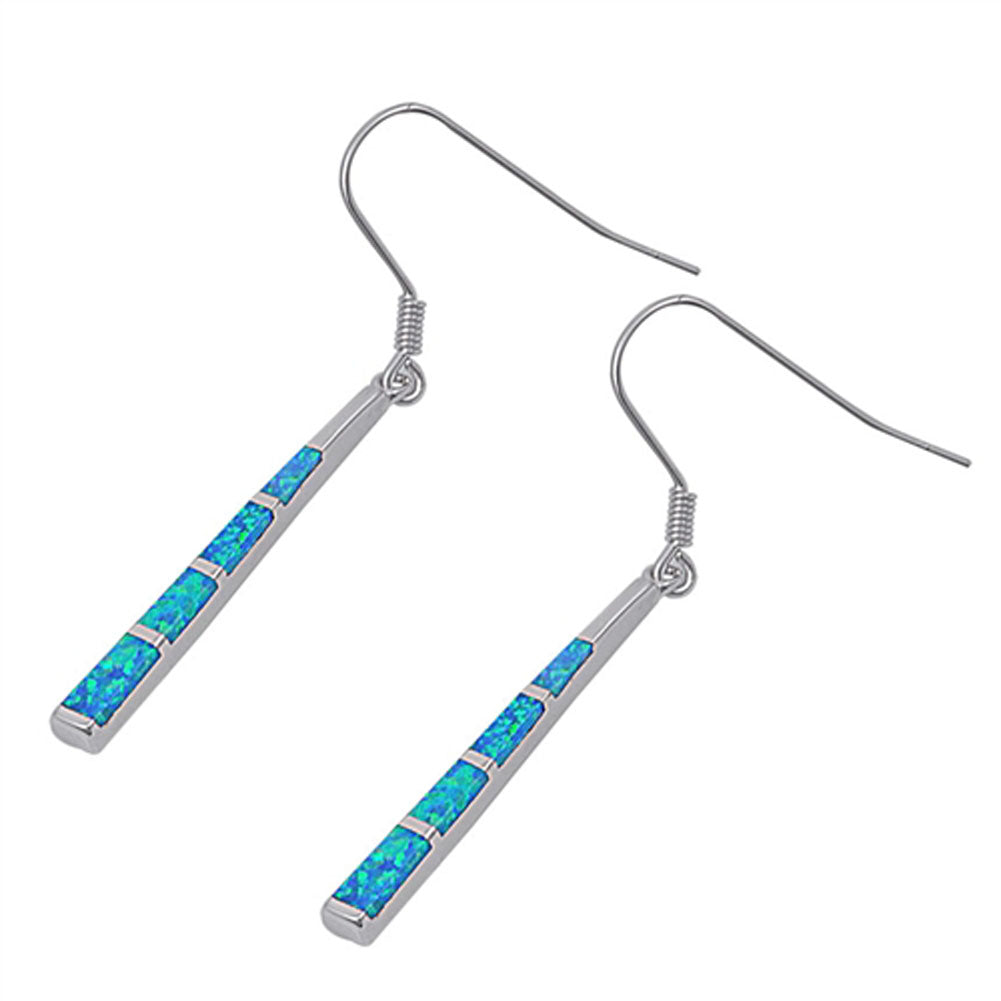 Bar Long Earrings Blue Simulated Opal .925 Sterling Silver