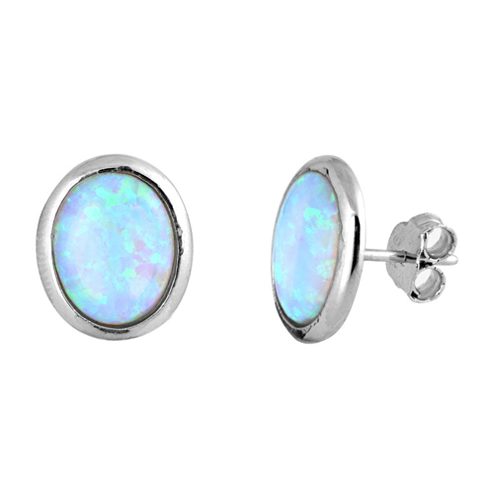 High Polish Oval Simple White Simulated Opal .925 Sterling Silver Classic Earrings