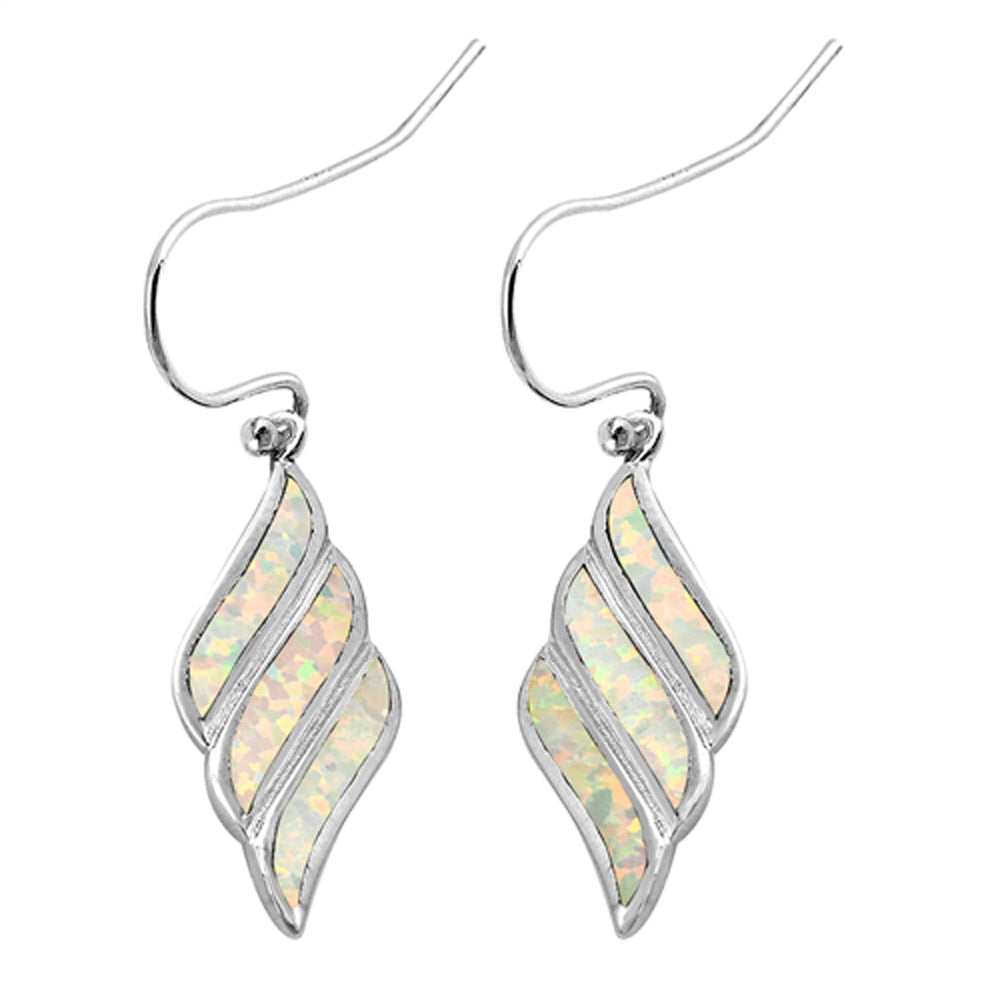 Sterling Silver Elegant Shell Wave Vintage Style Earrings White Synthetic Opal
