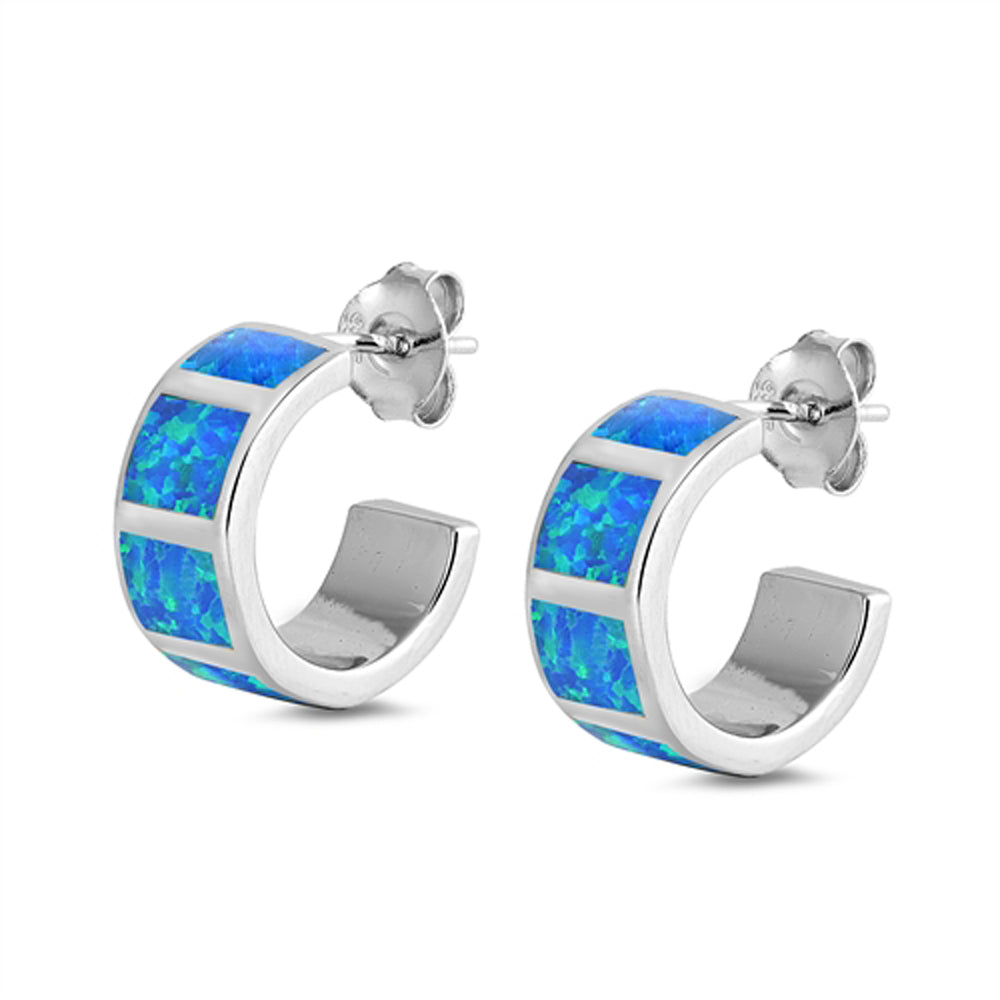 Sterling Silver Mosaic Hoop Geometric High Polish Earrings Blue Synthetic Opal