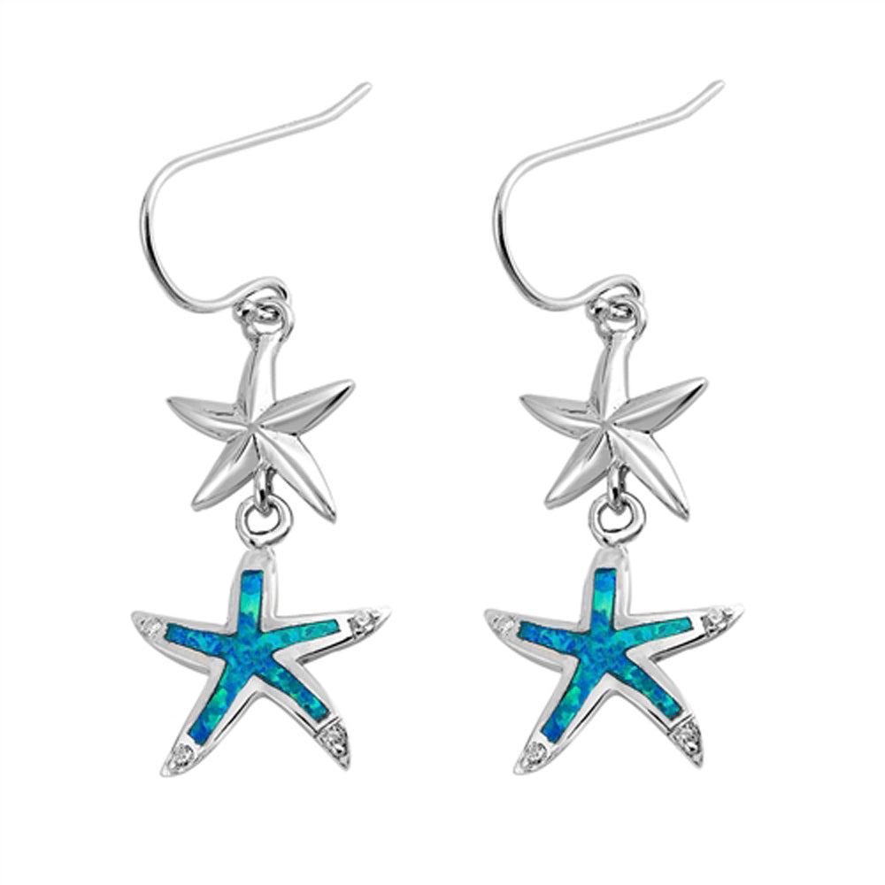 Sterling Silver Starfish Sea Star Shell Beach Earrings Blue Synthetic Opal 925