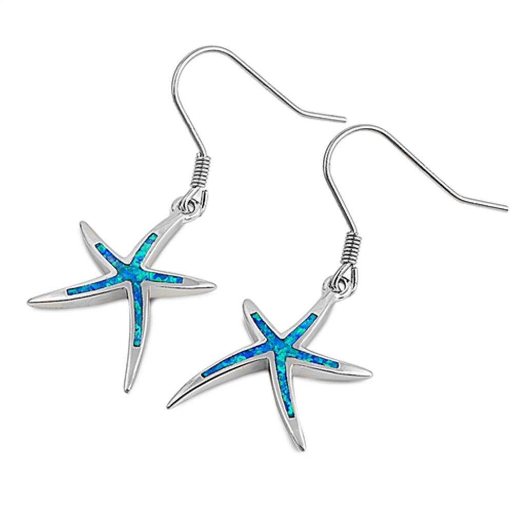 Sterling Silver Beach Starfish Star Shell Ocean Earrings Blue Synthetic Opal 925