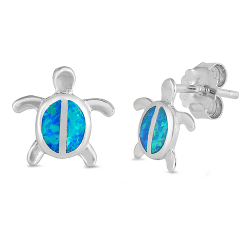 Sterling Silver Cute Turtle High Polish Ocean Earrings Blue Synthetic Opal 925