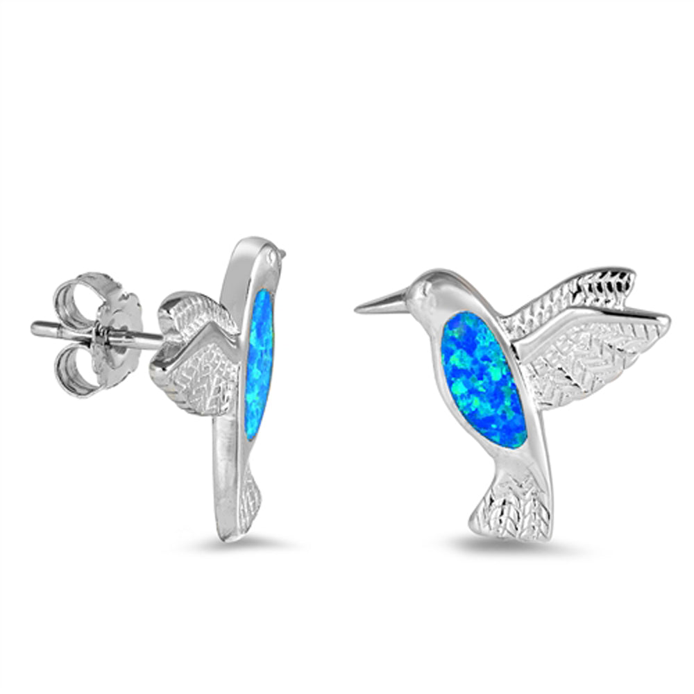 Sterling Silver Hummingbird Bird Animal Cute Earrings Blue Synthetic Opal 925