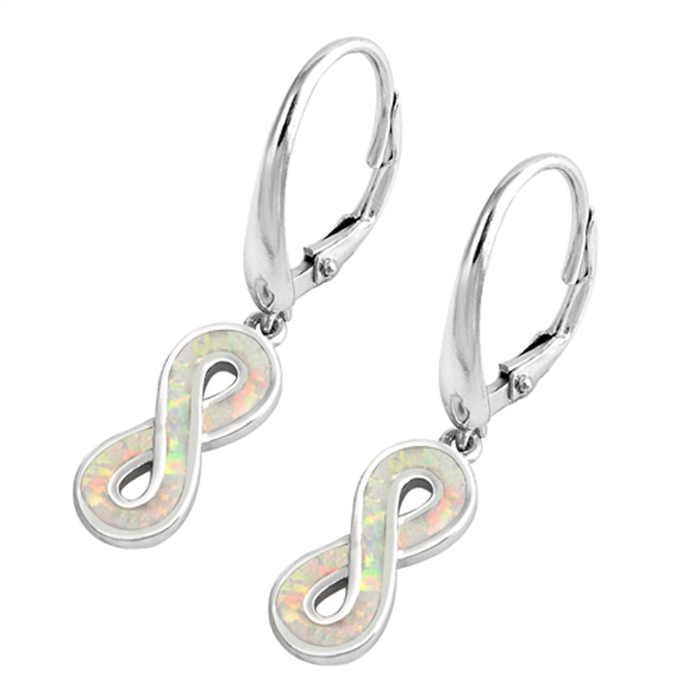 Sterling Silver Mosaic Infinity Twist Elegant Earrings White Synthetic Opal 925