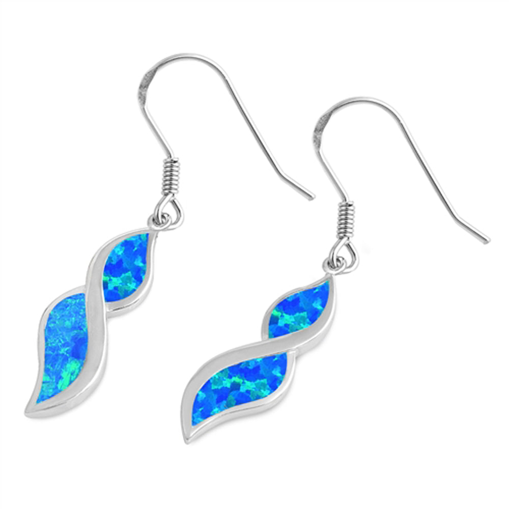 Sterling Silver Classic Twist Twirl Weave Braid Earrings Blue Synthetic Opal 925