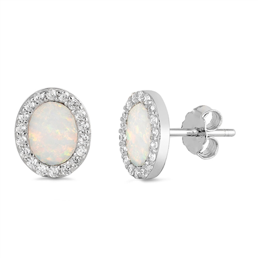 Sterling Silver Classic Oval Elegant Cluster Halo Earrings White Synthetic Opal