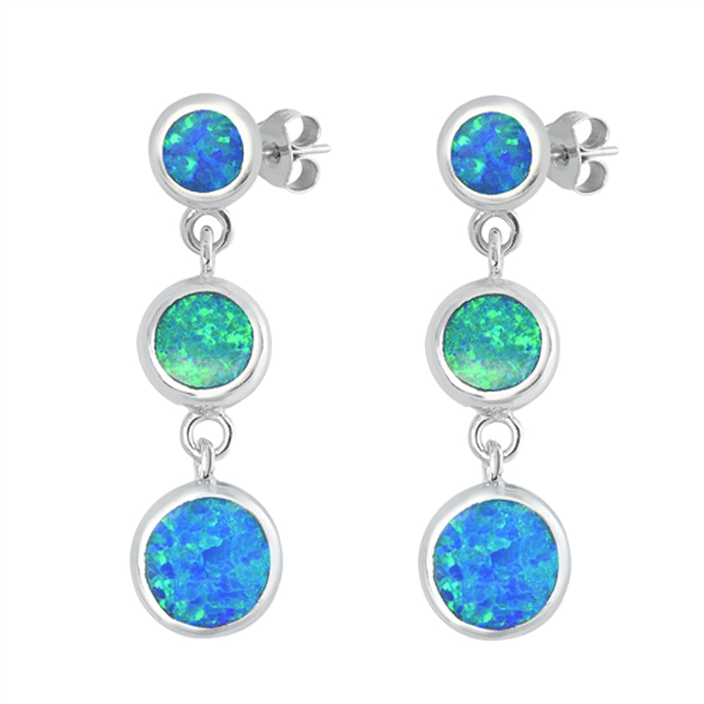 Sterling Silver Journey Dangle Circle Round Earrings Blue Synthetic Opal 925 New