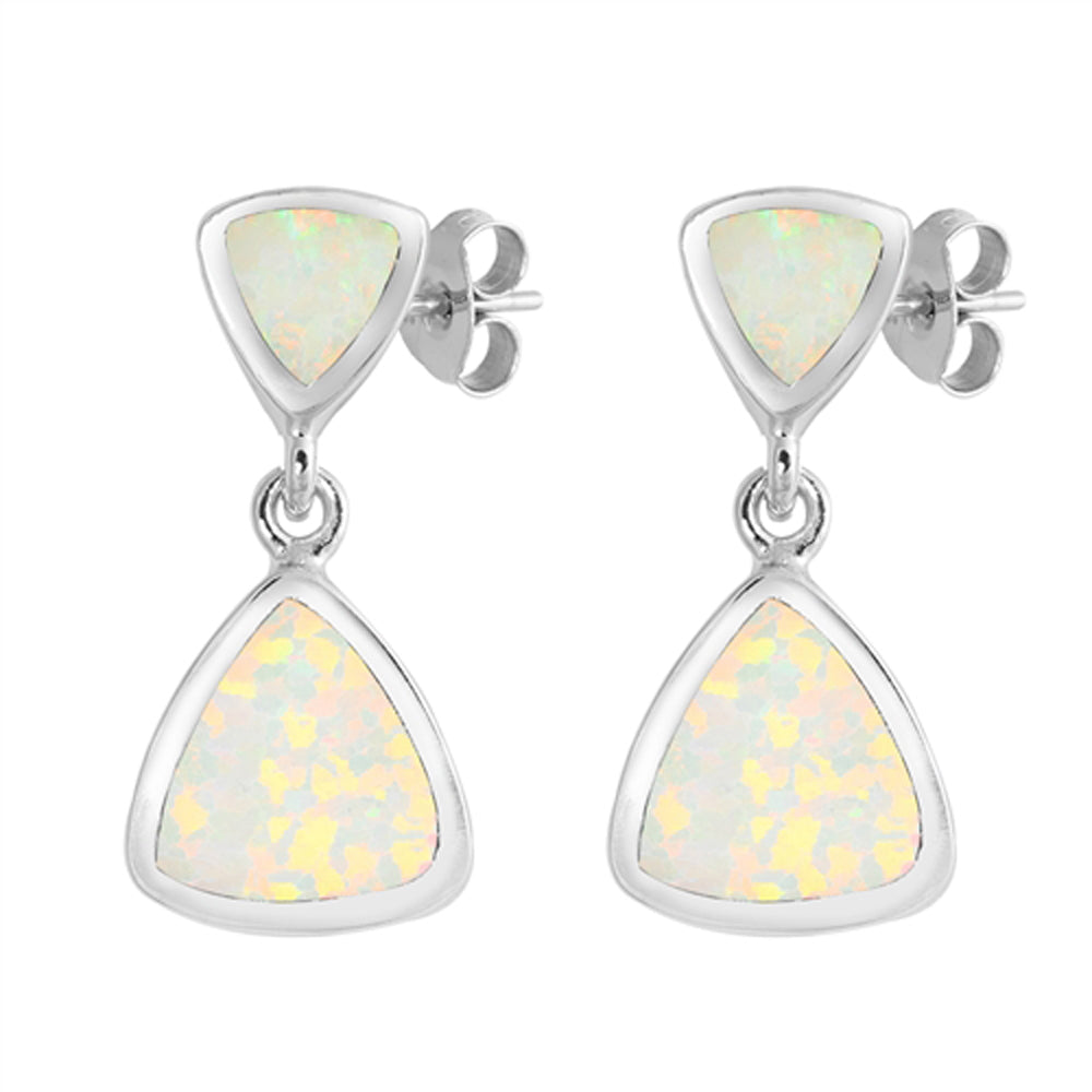 Sterling Silver Modern Triangle Journey Statement Earrings White Synthetic Opal