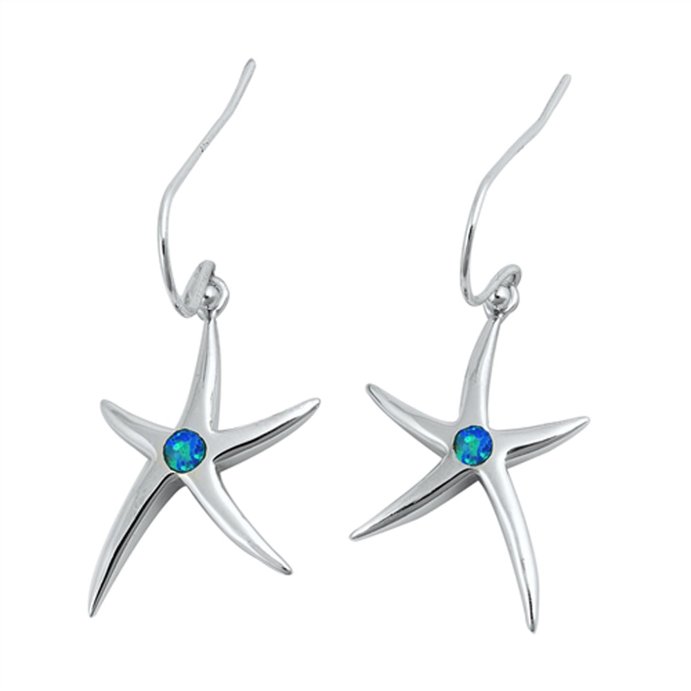 Sterling Silver Beach Starfish Star Ocean Sea Shell Earrings Blue Synthetic Opal