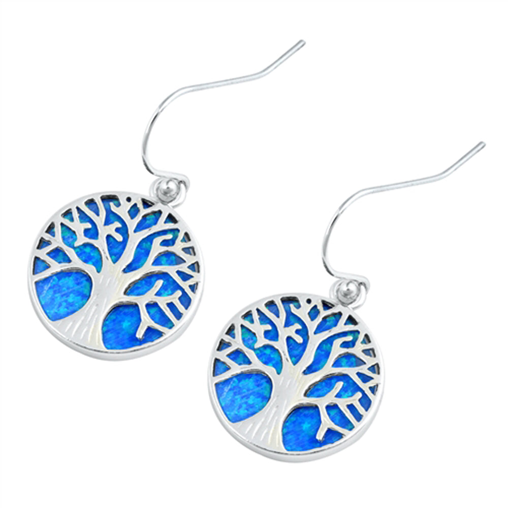 Sterling Silver Tree of Life Medallion Mosaic Earrings Blue Synthetic Opal 925