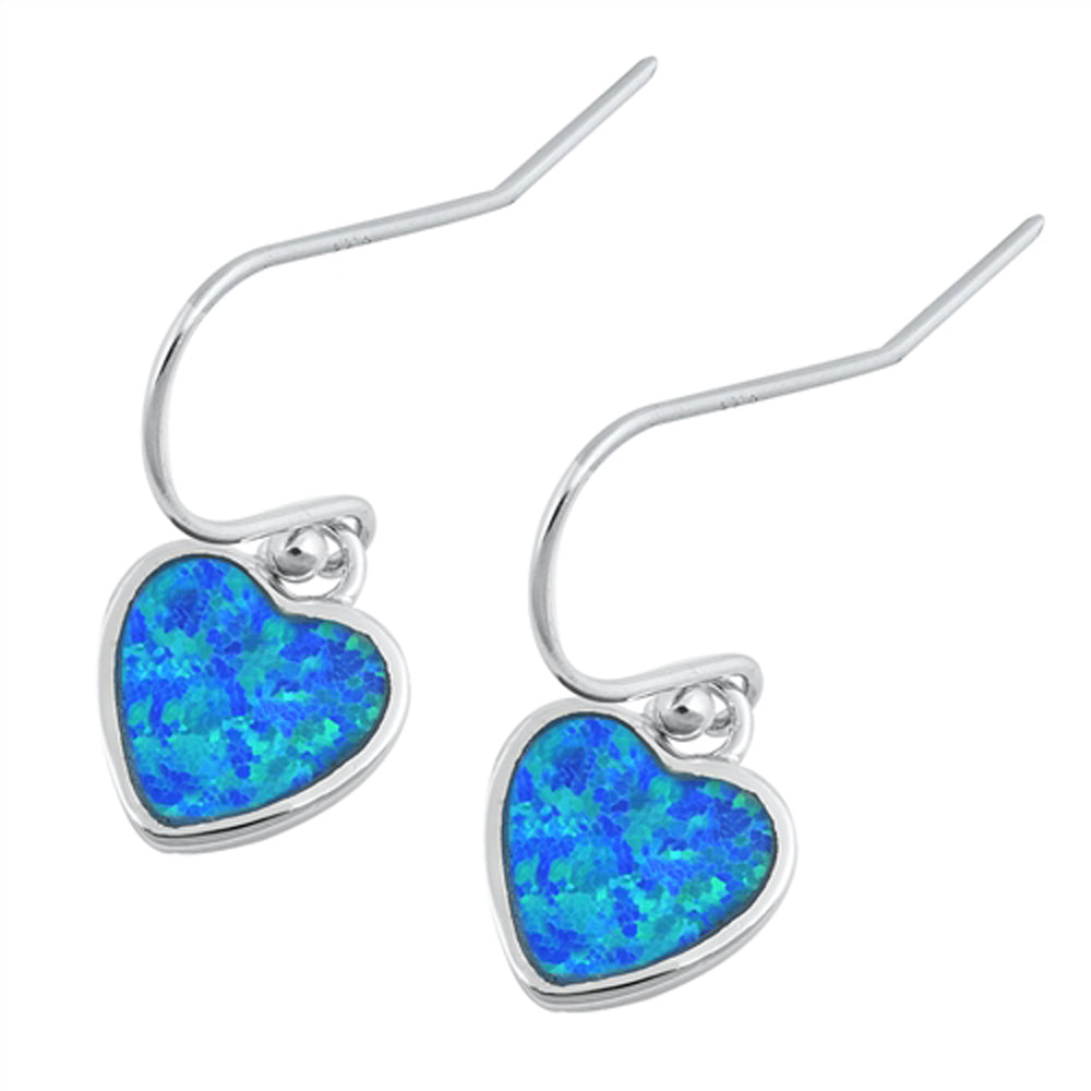 Sterling Silver Promise Heart Simple Love Dangle Earrings Blue Synthetic Opal