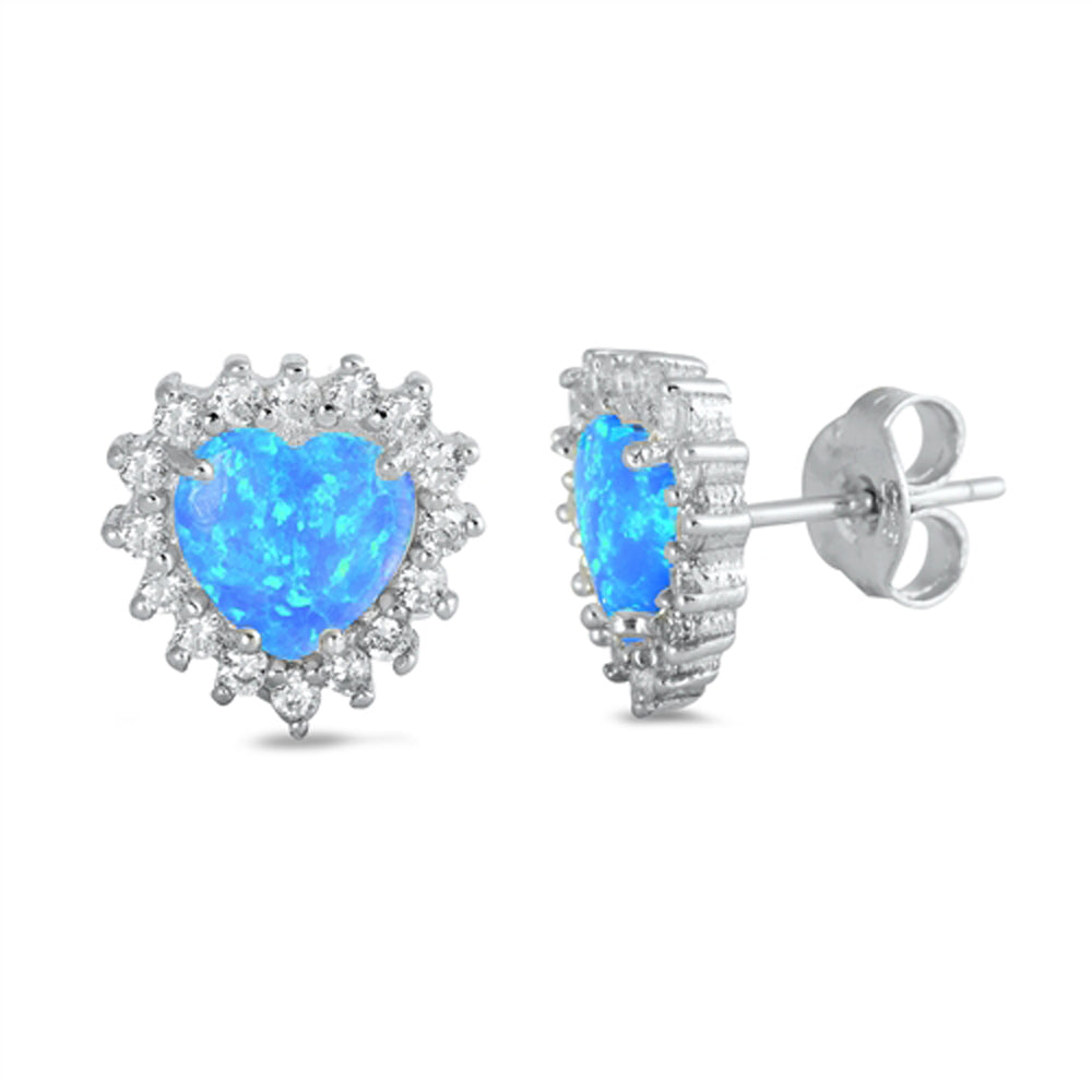 Sterling Silver Burst Heart Vintage Style Studded Earrings Blue Synthetic Opal