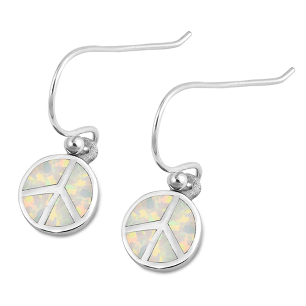 Sterling Silver Peace Sign Polished Harmony Love Earrings White Synthetic Opal