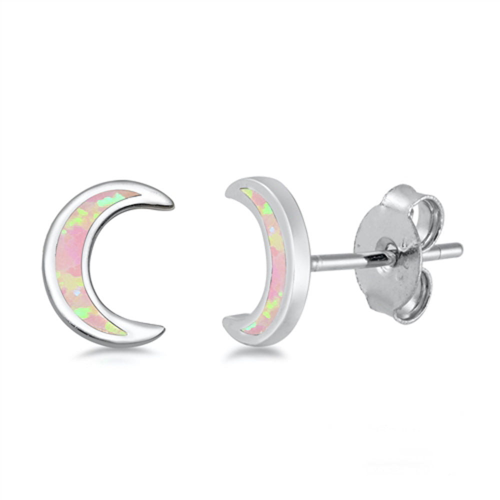 Sterling Silver Crescent Moon Classic Simple Cute Earrings Pink Synthetic Opal