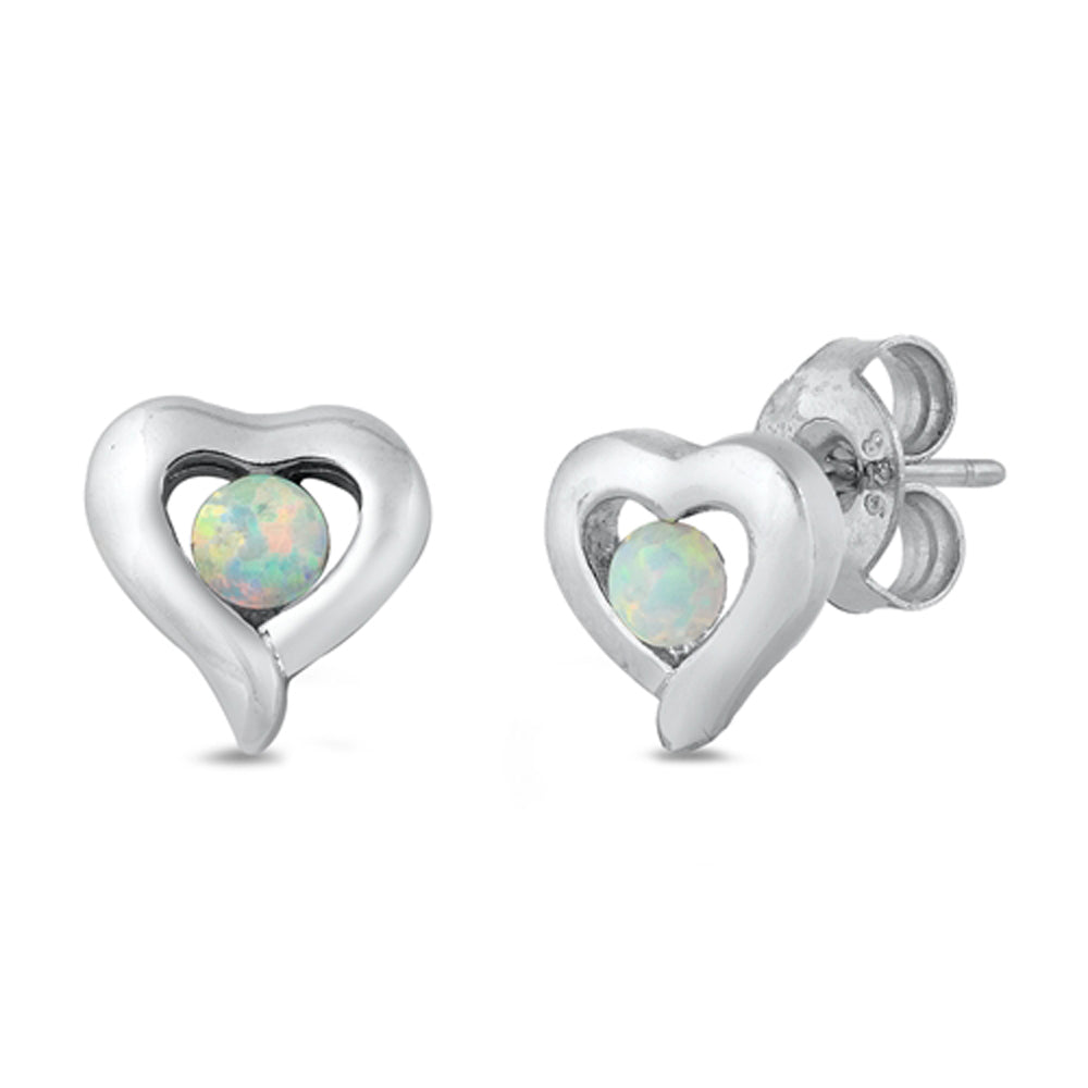 Sterling Silver Classic Heart High Polish Simple Earrings White Synthetic Opal