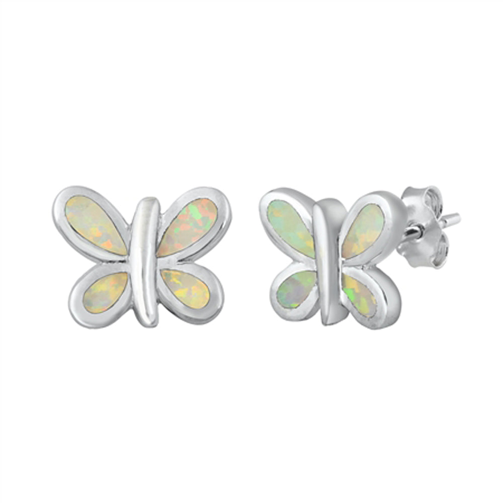 Sterling Silver Cute Butterfly Animal Modern Earrings White Synthetic Opal 925