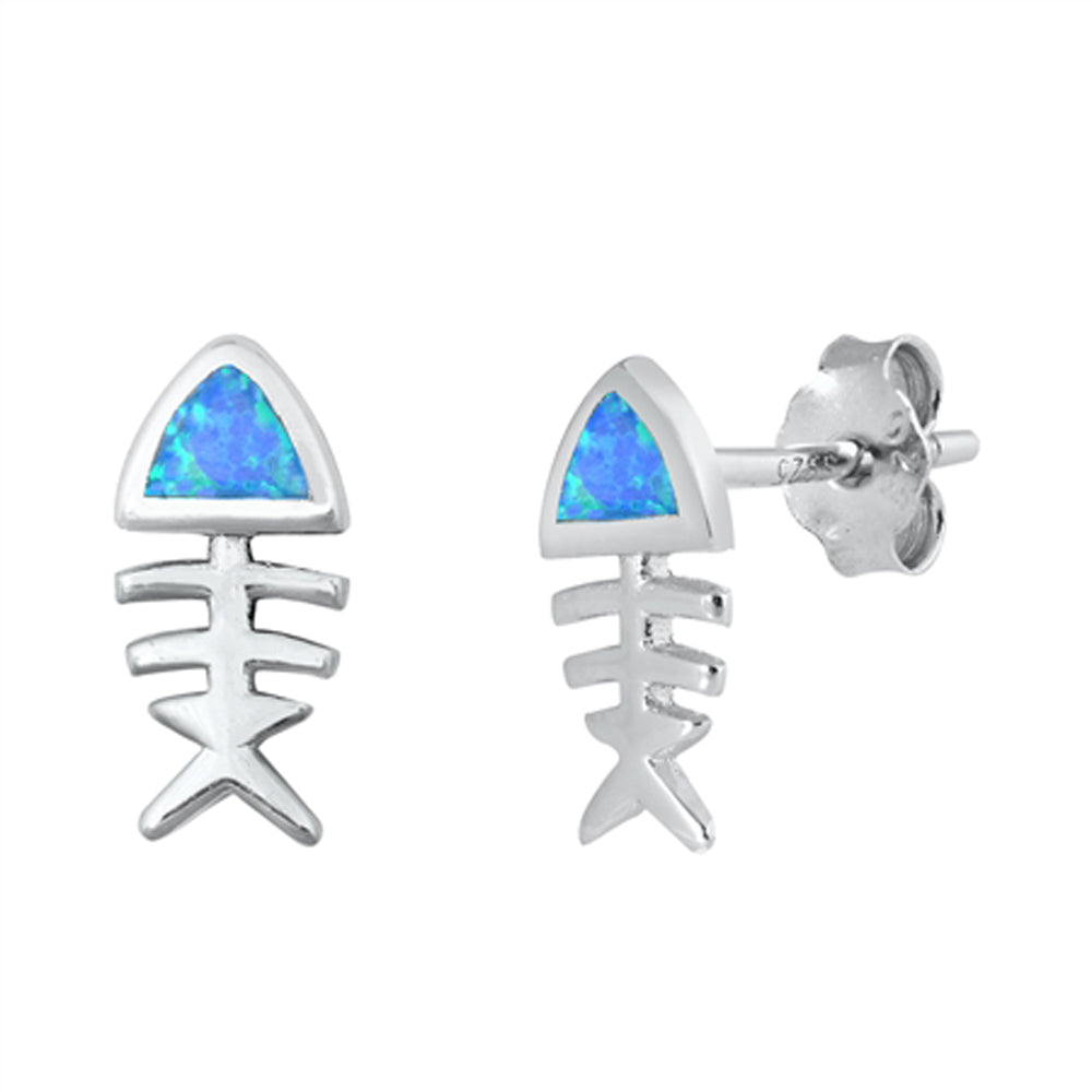 Sterling Silver Dead Fish Skeleton Bones Animal Earrings Blue Synthetic Opal 925