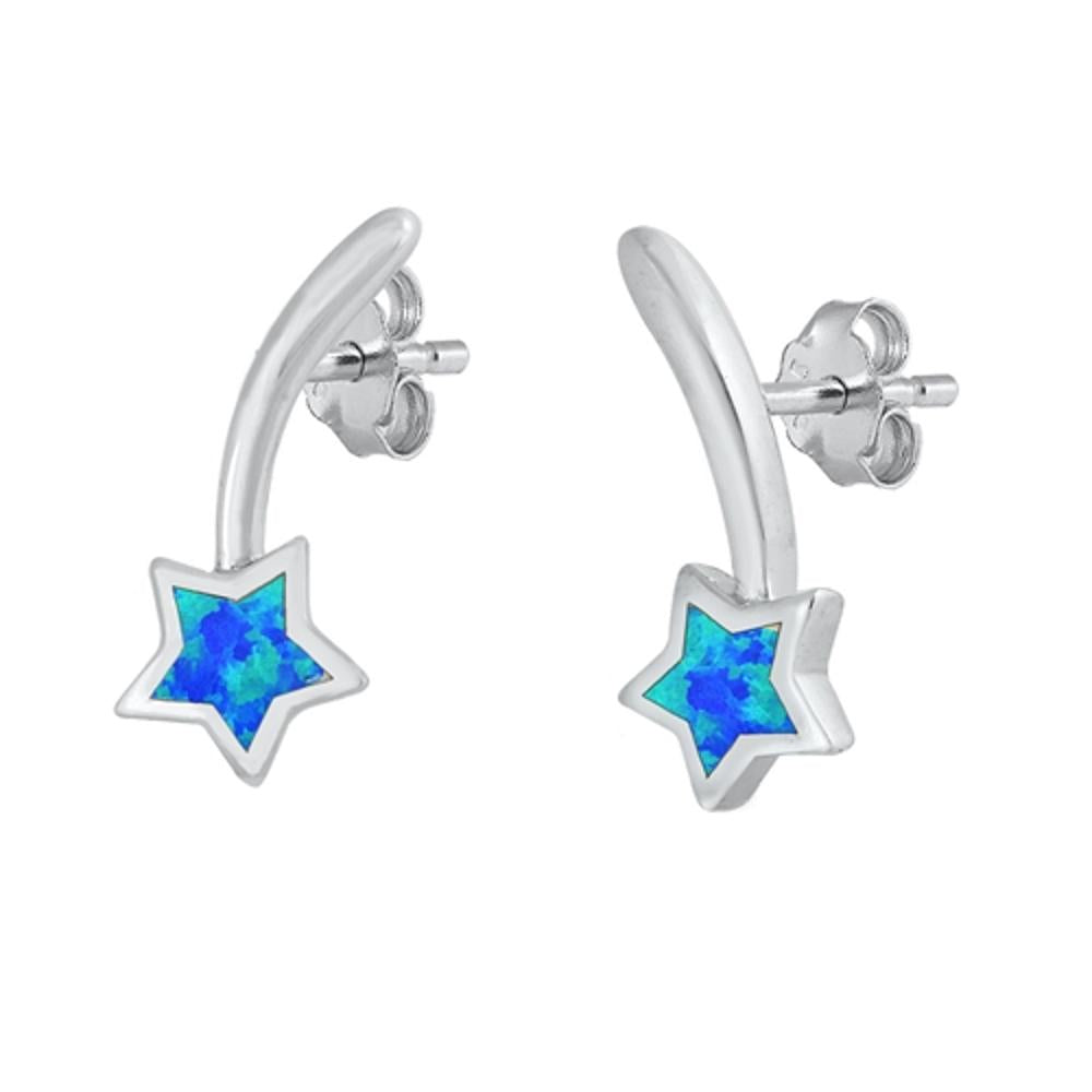 Shooting Star Blue Opal Earrings Sterling Silver Crawler Dangle 925 New