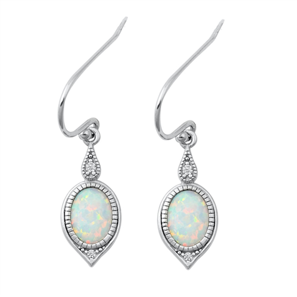 Sterling Silver Bali Style Drop Dangle Oval Earrings White Synthetic Opal 925