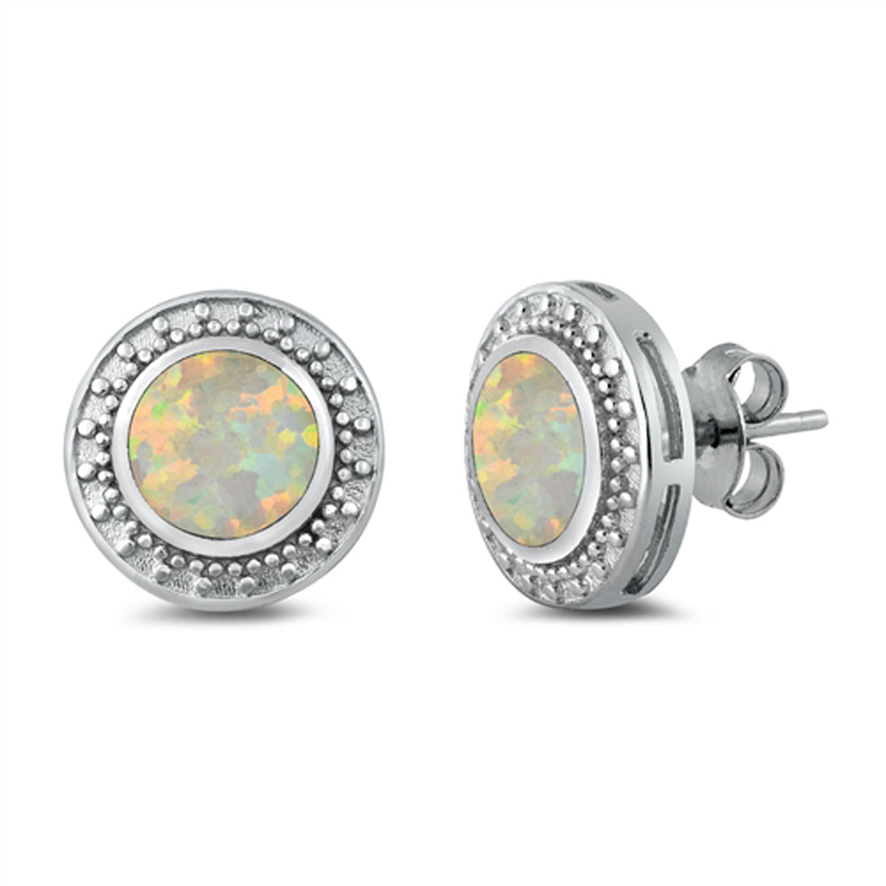 Sterling Silver Boho Circle Unique Round Earrings White Synthetic Opal 925 New