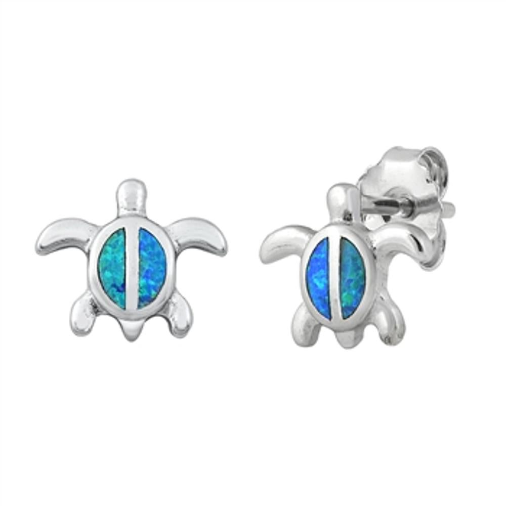 Sterling Silver Classic Blue Synthetic Opal Turtle Stud Beach Earrings .925 New
