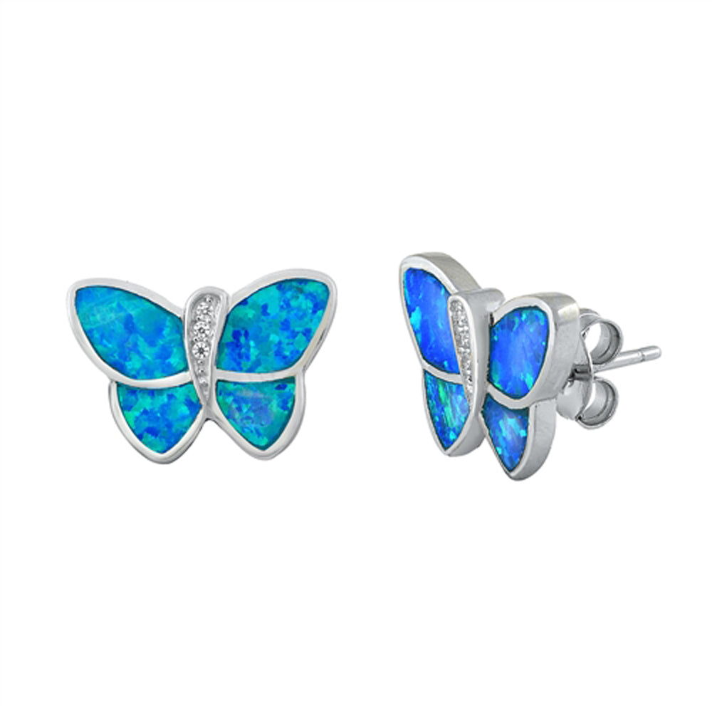 Sterling Silver Cute Butterfly Mosaic Earrings Blue Synthetic Opal 925 New