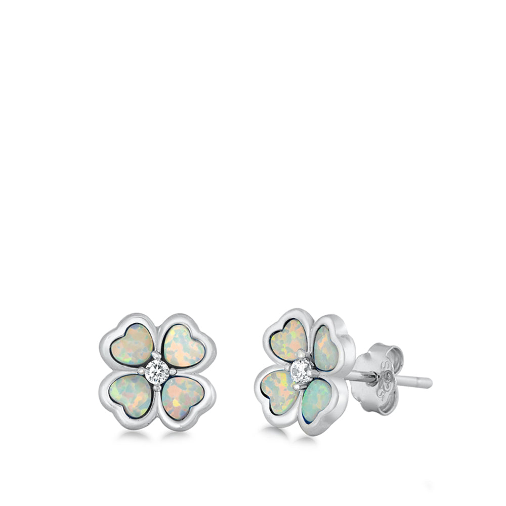 Sterling Silver Clover Heart Flower Mosaic Cute Earrings White Synthetic Opal
