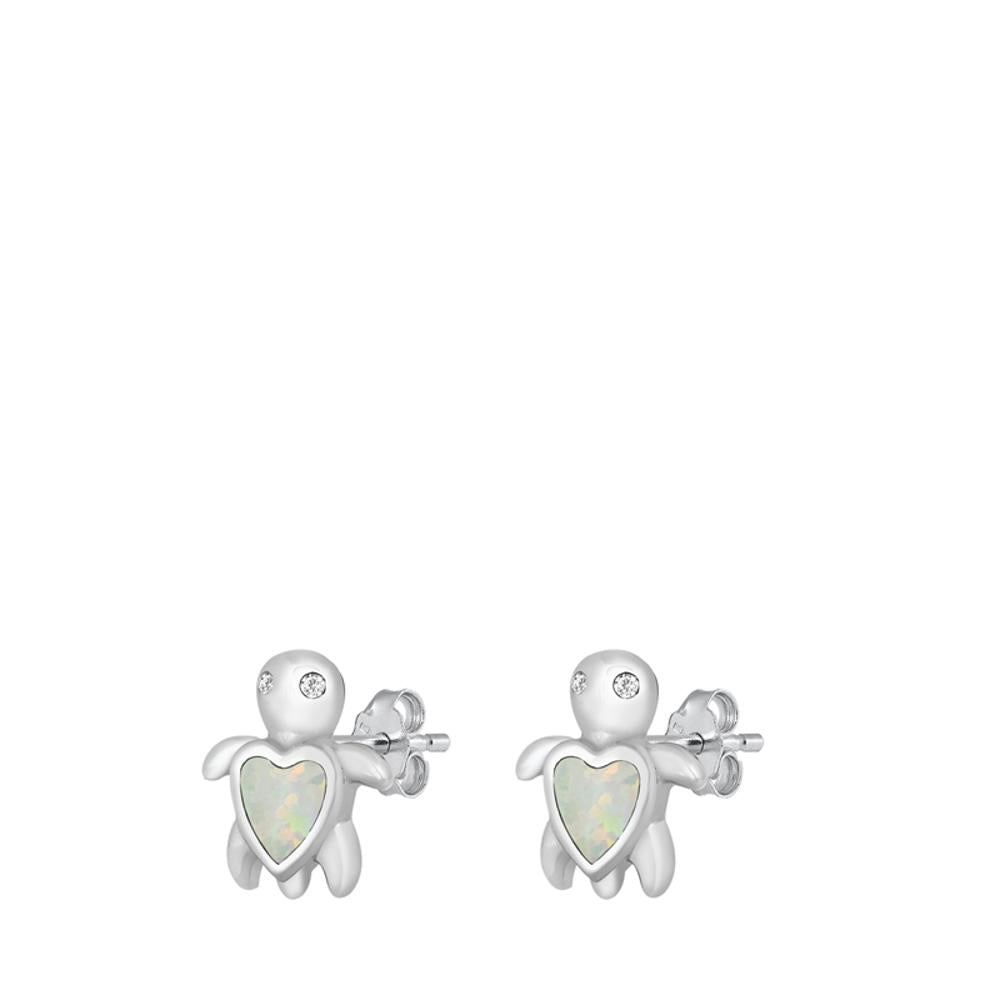 Cute Dainty Sterling Silver White Opal Heart Earrings Sea Turtle Studs 925 New