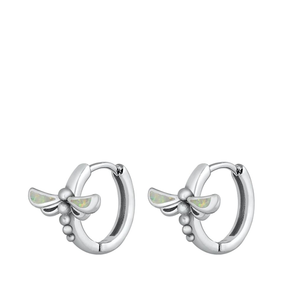 White Opal Dragonfly Hoop Earrings Sterling Silver Insect Flying 925 New