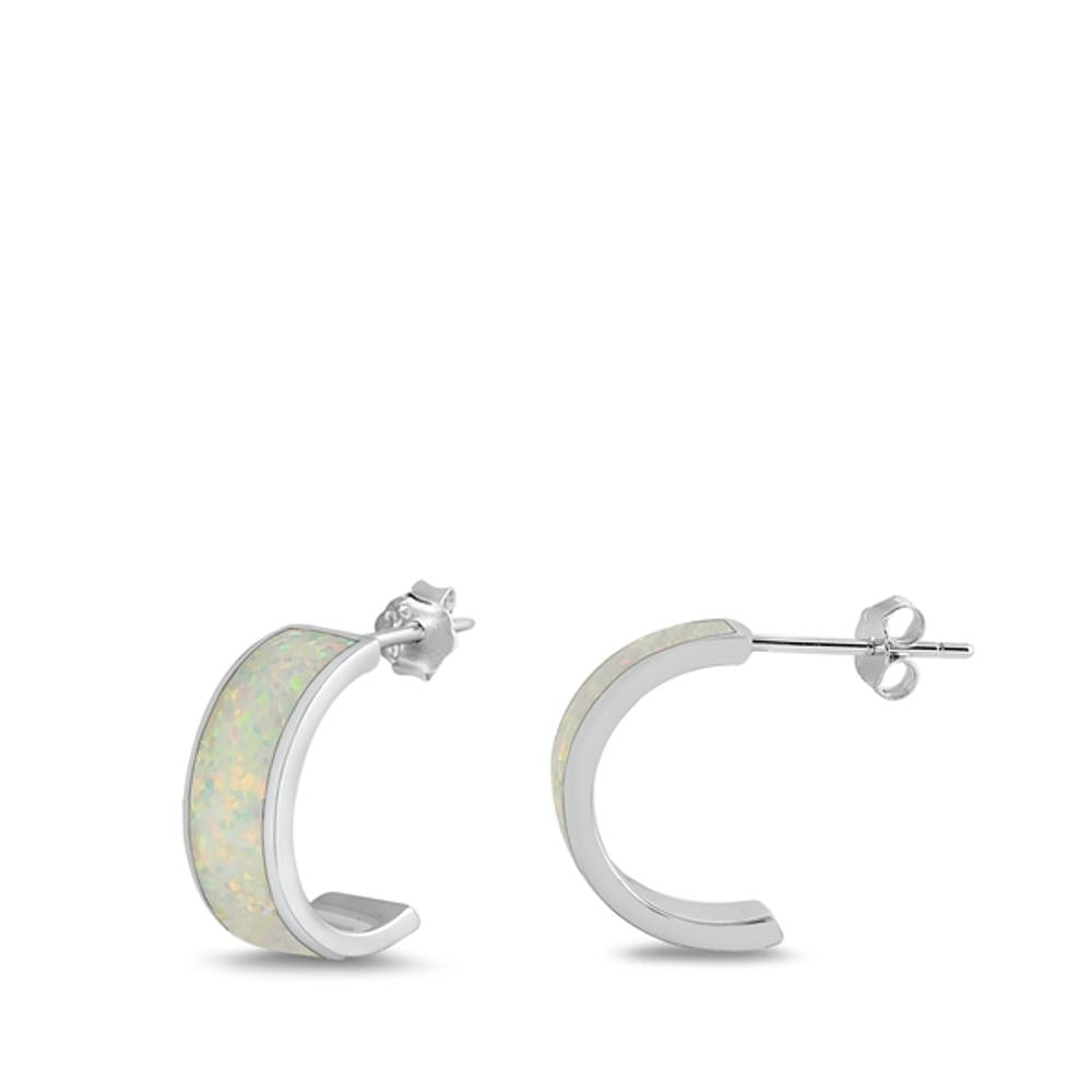 Trendy Sterling Silver White Opal Half Hoop High Polished Earrings 925 New