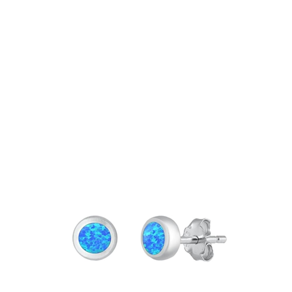 Cute Mini Round Blue Opal Stud Earrings High Polished Sterling Silver 925 New