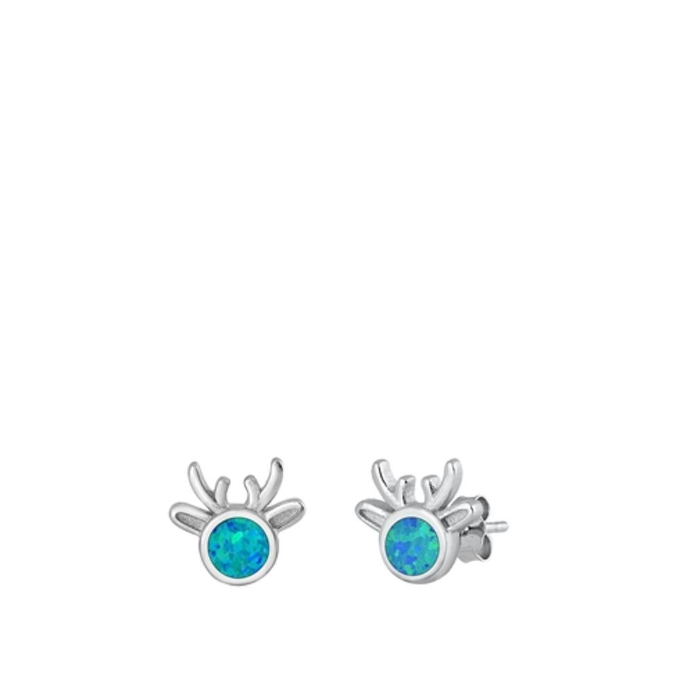 Sterling Silver Classic Blue Synthetic Opal Reindeer Christmas Earrings 925 New