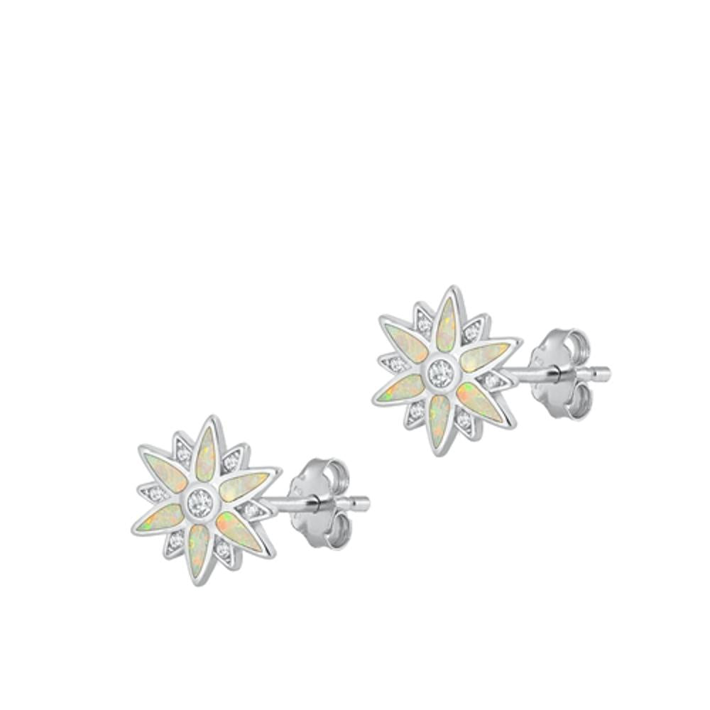 Sterling Silver Classic Snowflake White Synthetic Opal Clear CZ Star Earrings