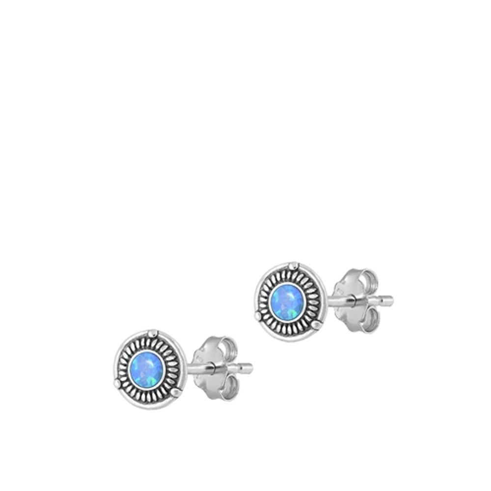 Sterling Silver Chic Bali Fashion Blue Synthetic Opal Stud Earrings 925 New